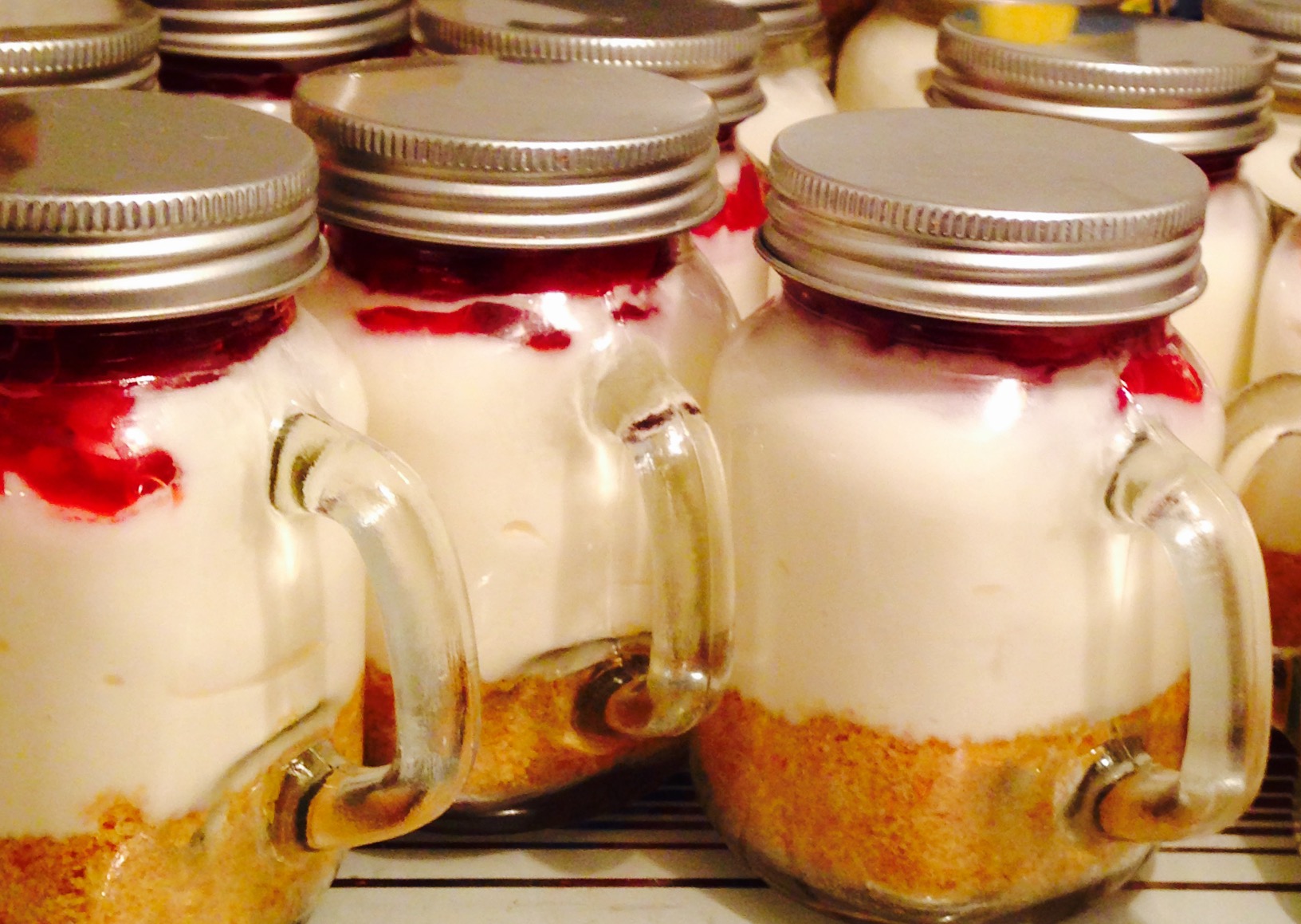 Dessert: Cheesecakes in Jars, Roasted Peaches with Caramel & Sea Salt